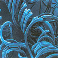 LYCRA?T400?纖維的高分辨率照片表明,每根單絲肉的兩種聚合物產(chǎn)生一種種狗骨狀的橫截面。